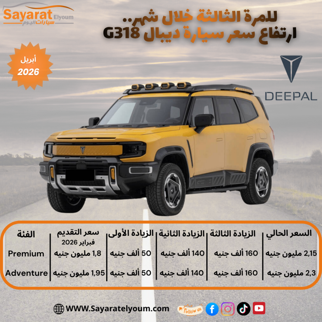 Deepal G318: الأكثر تأثرًا.. مارس وحده +190 ألف جنيه ثم زيادة أبريل بـ160 ألف