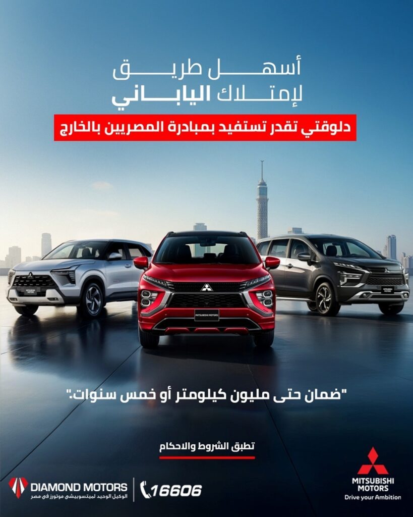 أعلنت شركة دايموند موتورز، الوكيل الحصري لسيارات ميتسوبيشي موتورز في مصر والتابعة لمجموعة الملا الكويتية، عن إطلاق خدمات بيع مخصصة لعملاء “مبادرة استيراد سيارات المصريين المقيمين بالخارج”، ضمن حزمة متكاملة من الخدمات الحصرية التي تستهدف تلبية احتياجات هذه الشريحة وتقديم تجربة شراء وامتلاك أكثر سلاسة واطمئنانًا.
