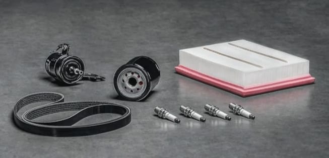 في الصيانات المتكررة ستجد تغيير زيت المحرك وفلتر الزيت بشكل شبه ثابت، ثم تظهر عناصر مثل فلتر الهواء وفلتر التكييف على فترات، وتظهر قطع أخرى على فواصل أكبر مثل البوجيهات، فلتر البنزين، زيت الفتيس، زيت الفرامل، ومياه التبريد، ومع الأرقام الكبيرة قد تظهر مكونات مثل سير الدينامو والشداد.
