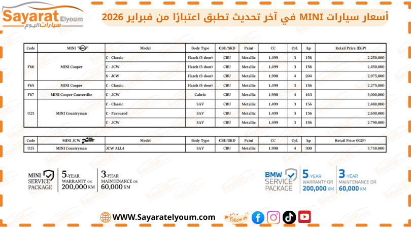 MINI تُحقّق أعلى مبيعات في تاريخها بالسوق المصري خلال عام 2025
