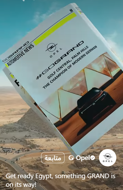 فقد أثارت الصفحة الرسمية لشركة أوبل على فيسبوك ضجة كبيرة بعد نشرها لفيديو تشويقي يحمل عبارة: “استعدي يا مصر، شيء عظيم في طريقه إليك!” (Get ready Egypt, something GRAND is on its way!). هذه العبارة وحدها كافية لإشعال حماس عشاق العلامة التجارية الألمانية، ولمحبي السيارات الفاخرة والتكنولوجيا المتطورة.