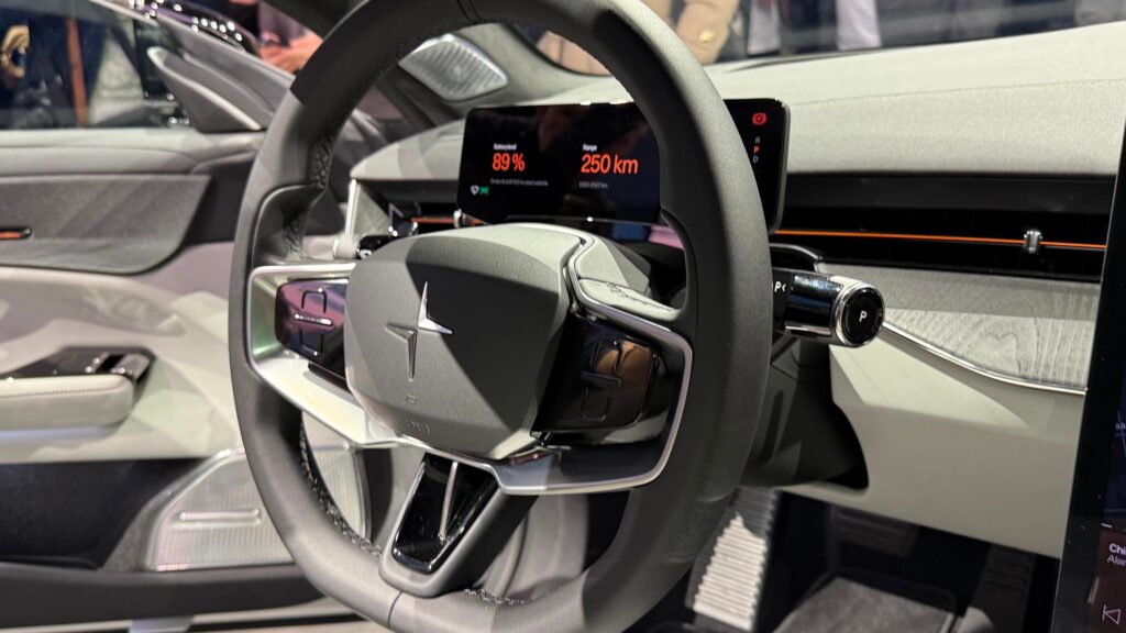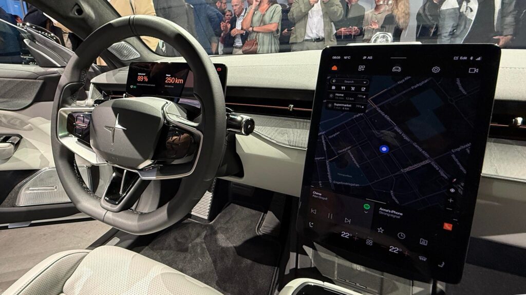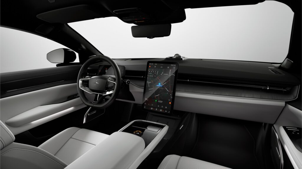 المقصورة الداخلية لـPolestar 5 تعكس البساطة السويدية المميزة للعلامة التجارية، مع تركيز واضح على المواد المستدامة والطبيعية والمعاد تدويرها.