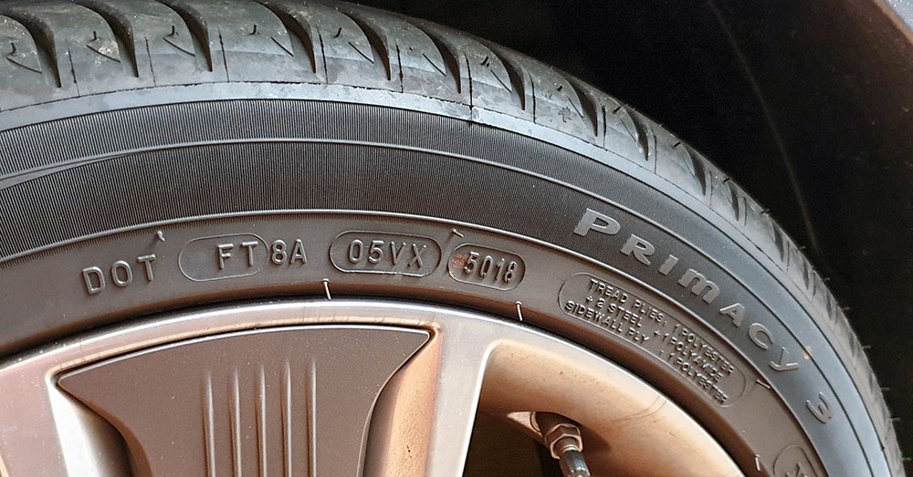 هنا يأتي دور رمز DOT المطبوع على الجدار الجانبي للإطار، وهو المفتاح الأسرع لمعرفة تاريخ تصنيع الإطار بالأسبوع والسنة.