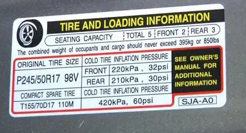 - اعتمد رقم الضغط من ملصق باب السائق أو دليل المالك، لا من جانب الإطار.
