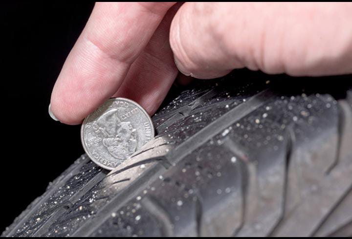 أفضل طريقة هي مقياس عمق النقشة (Tread Depth Gauge).