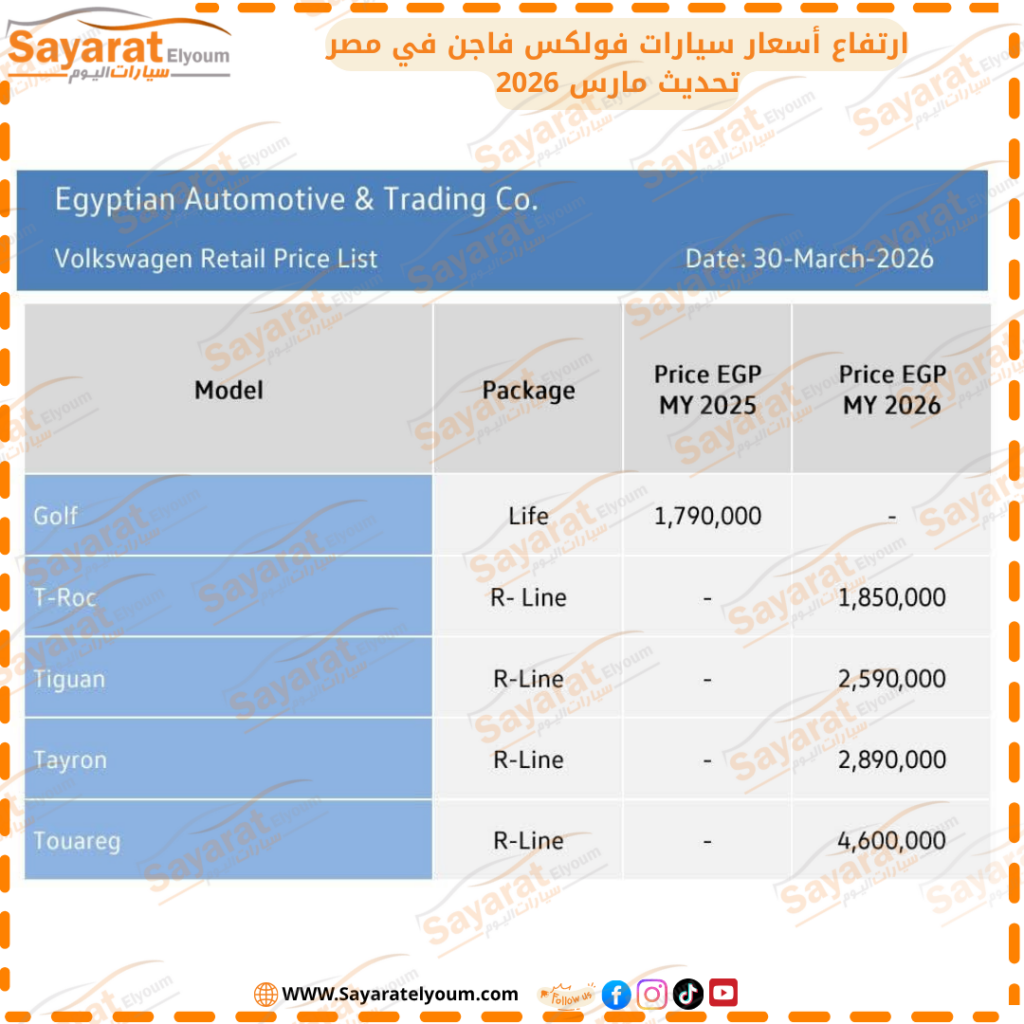 وتأتي هذه التحركات السعرية بالتزامن مع طرح/تسعير موديلات 2026 لبعض الطرازات واستمرار تسعير جولف كموديل 2025.